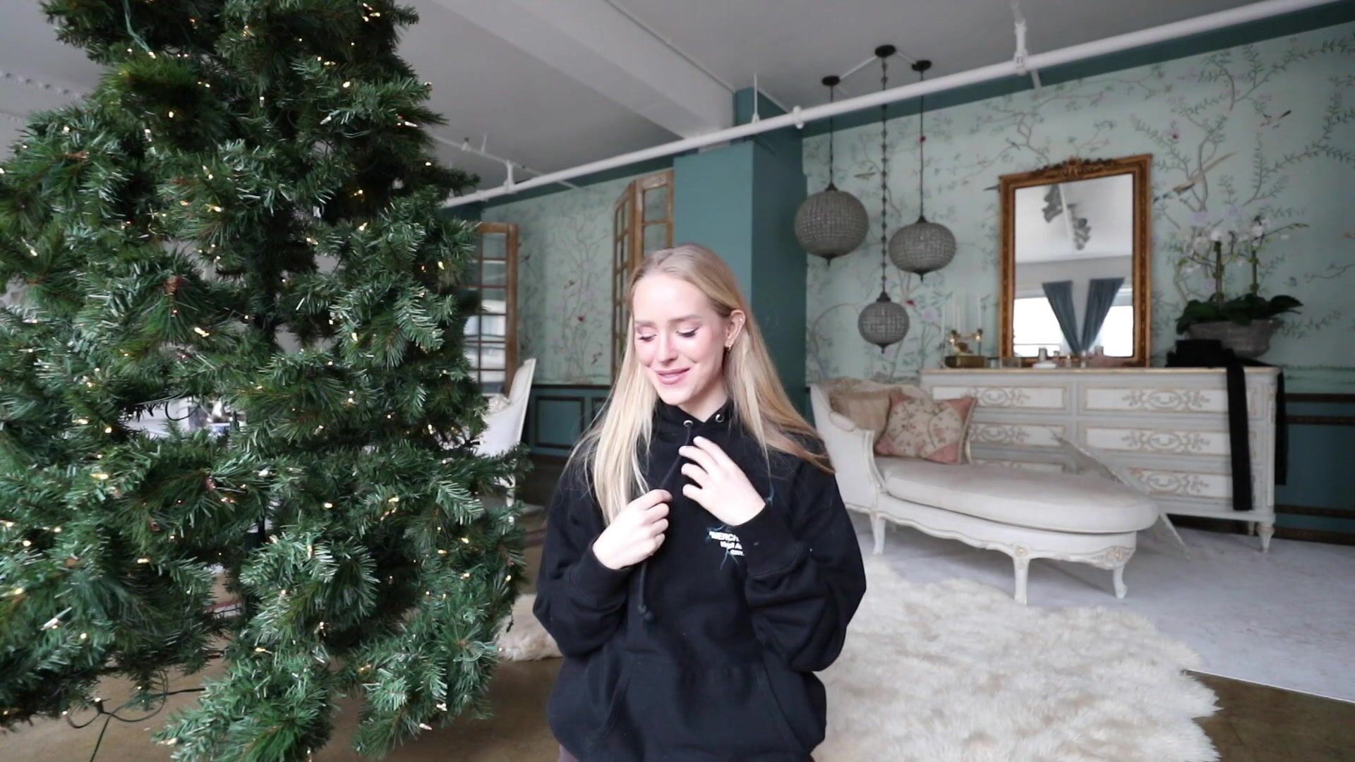 Caroline Zalog Blonde Beauty Try on New Outfits in Christmas Day Video