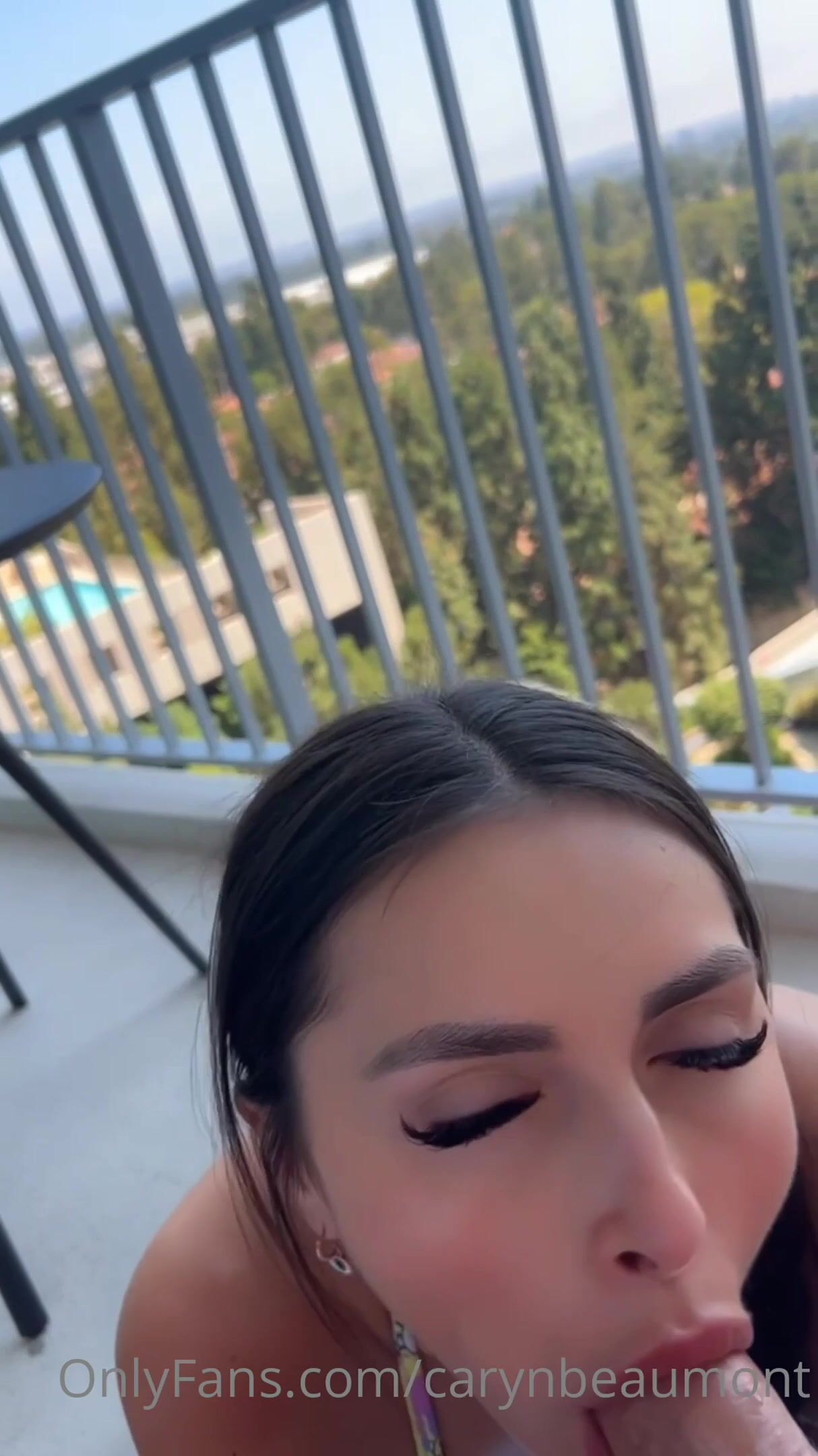 Carynbeaumont Brunette Passionately Sucking BF's Cock on Balcony till he Cums Onlyfans Video