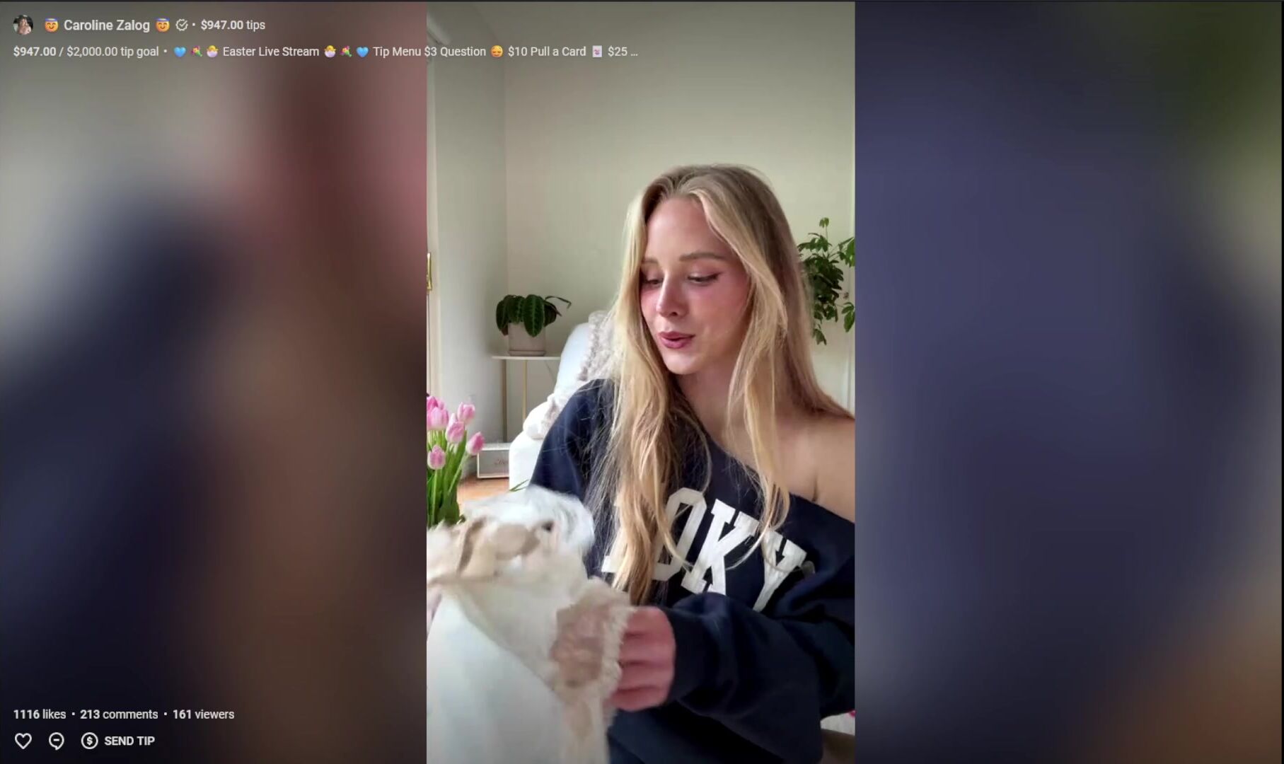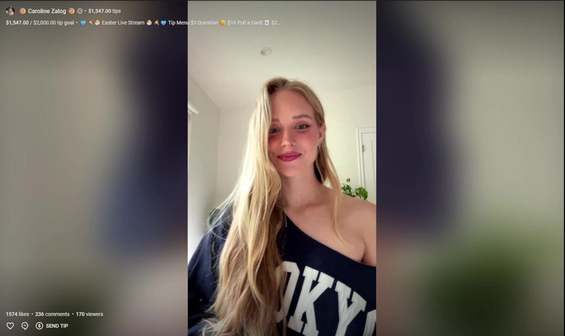 Caroline Zalog stripping down in a live stream video while wearing sexy lingerie