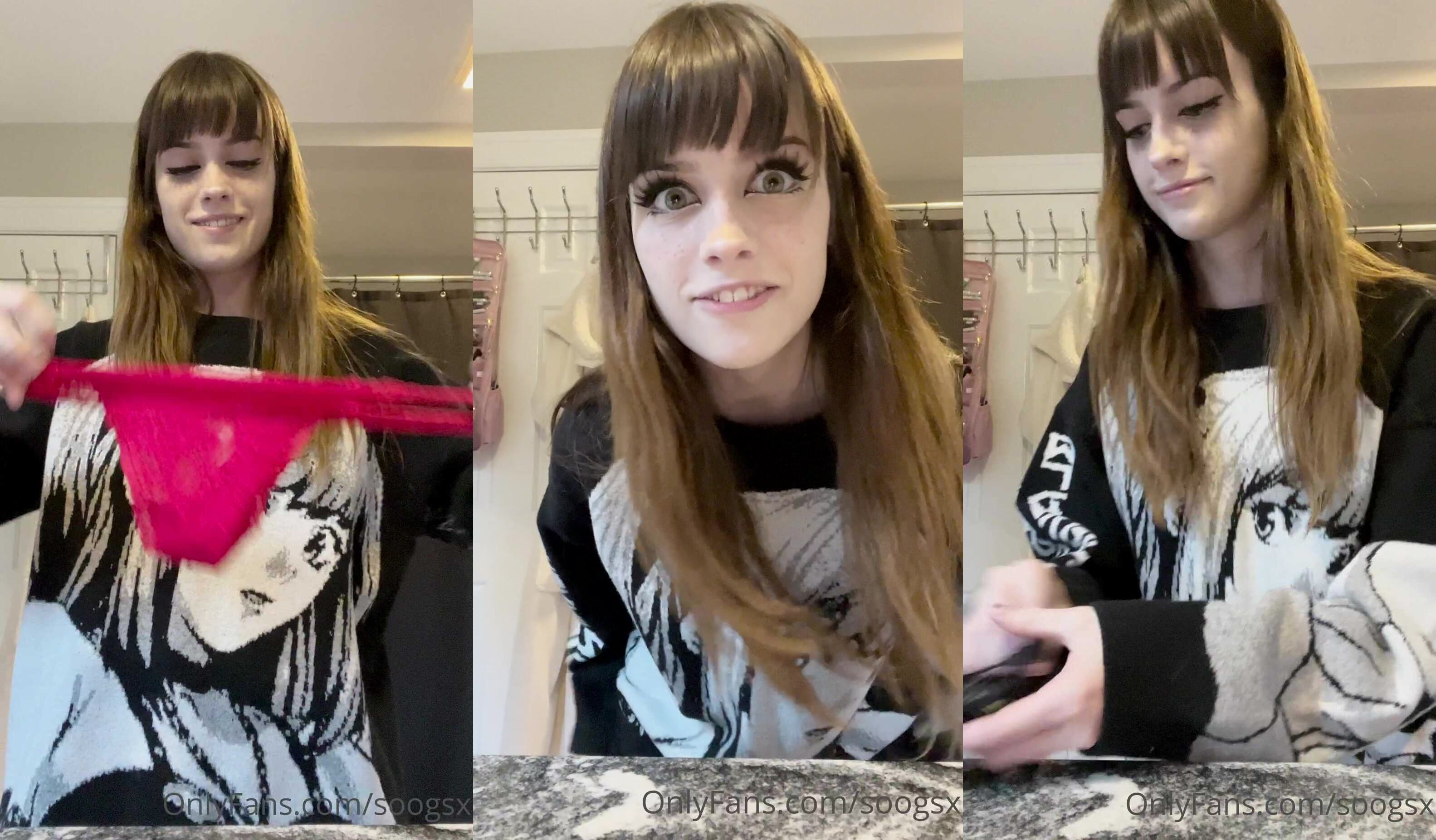 Catch Soogsx in this playful OnlyFans video as she teases in a casual shirt, flaunting her charm in a cozy setting.