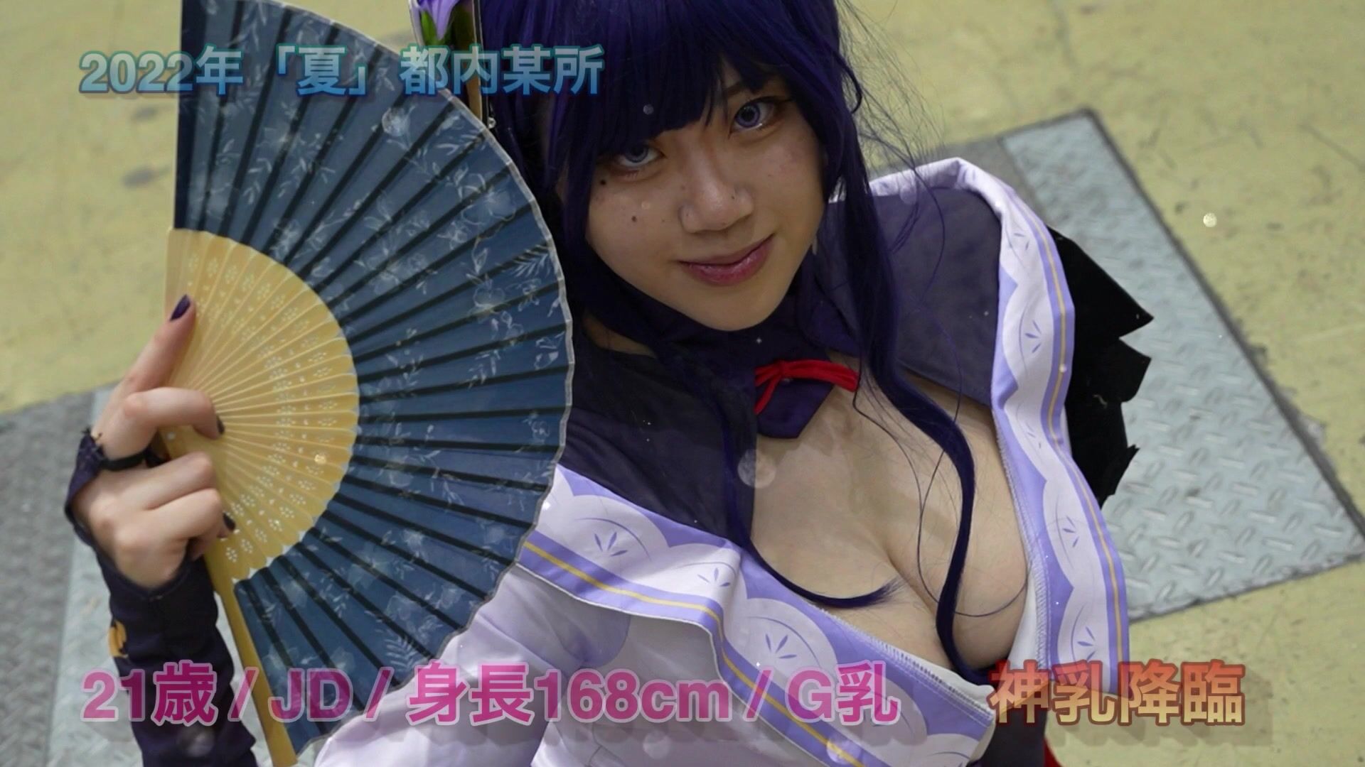 Petite Asian cutie in full cosplay teases her big tits and juicy ass in this candid-style video