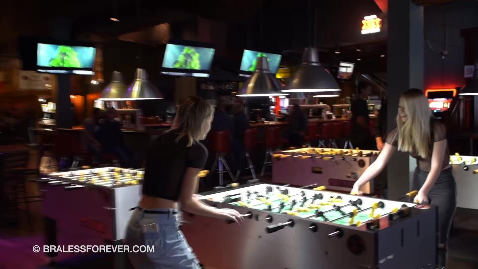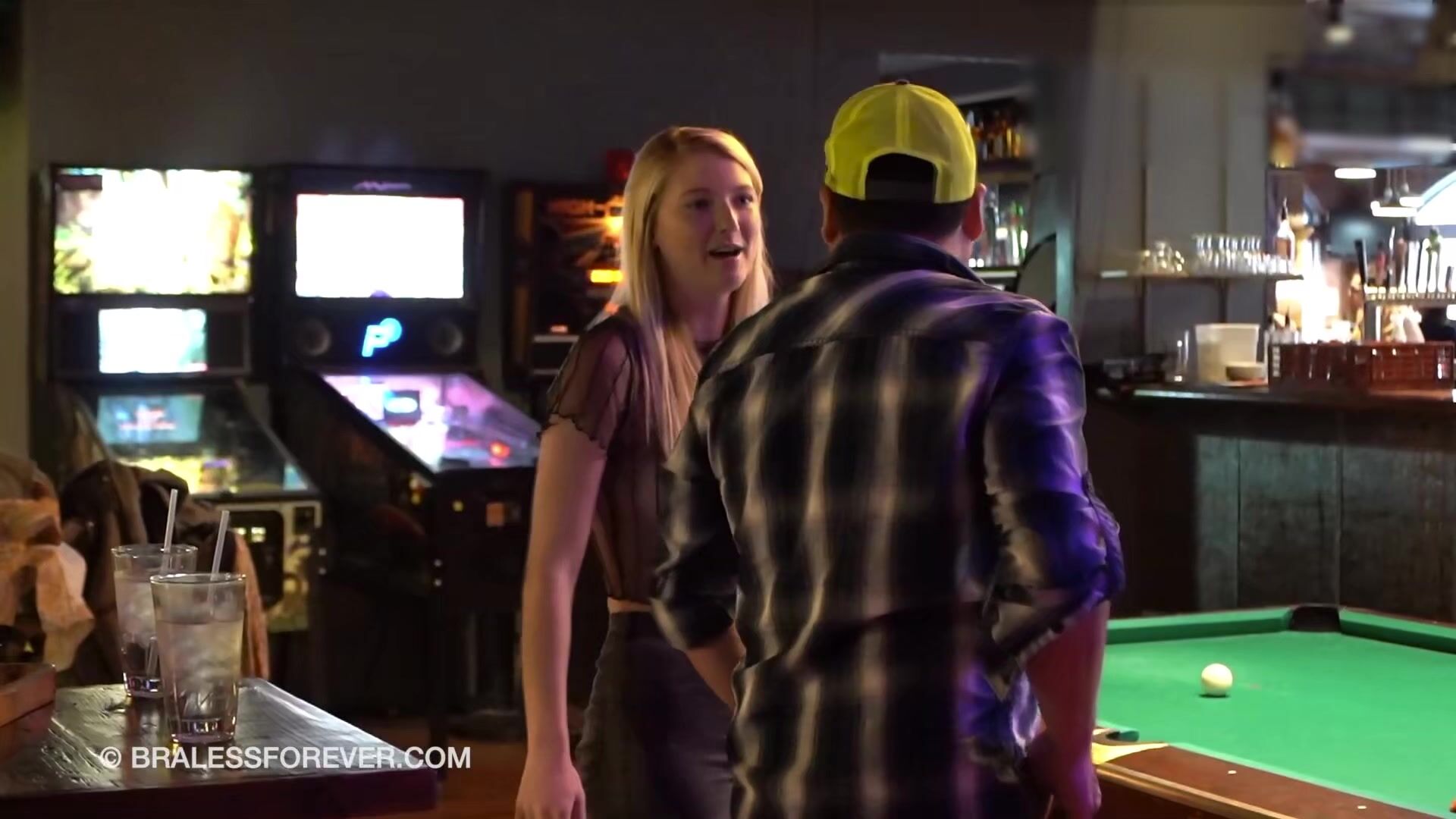 BralessForever Kaylee And Rachel Tease In A Bar While Playing Games And Going Braless