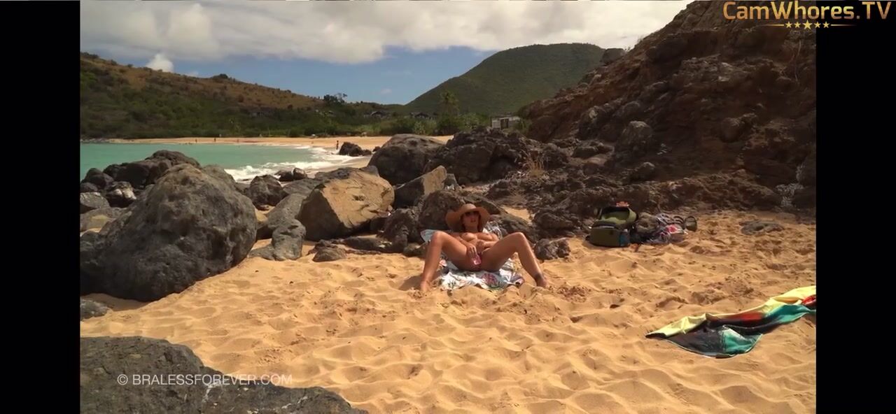 BralessForever hot Blondie enjoys a sunny beach day in this outdoor masturbation video, fingering her pussy and relaxing naked on the sandy shores.