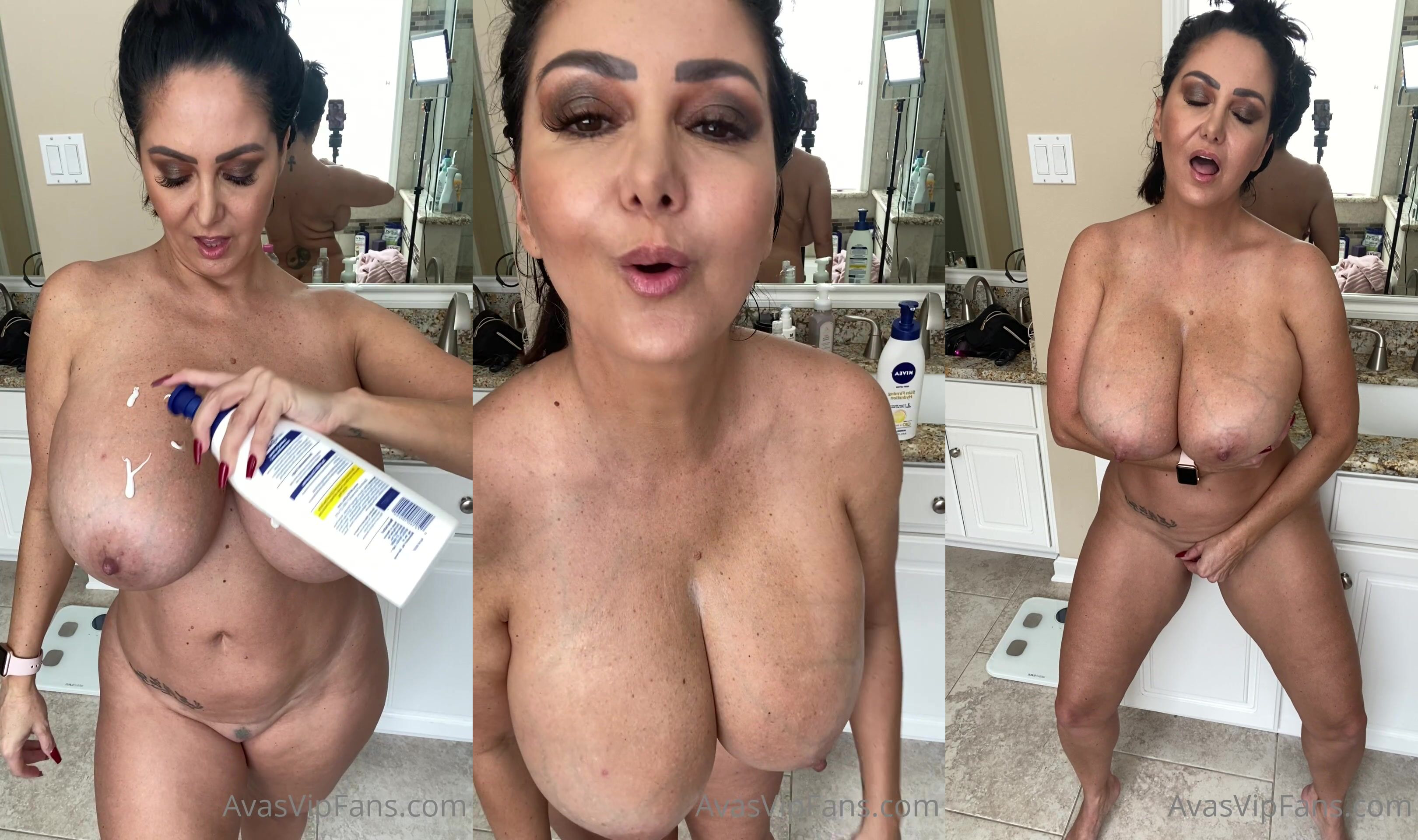 Ava Addams Naked Curvy Goddess Solo Play with Lotion in Bathroom Video