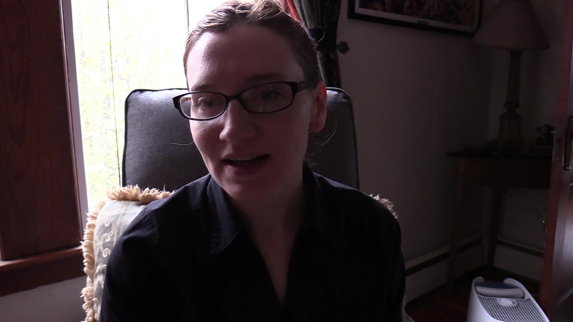 Bettie Bondage stars in Broken Arms III video with huge boobs exposed in a sexy black shirt.