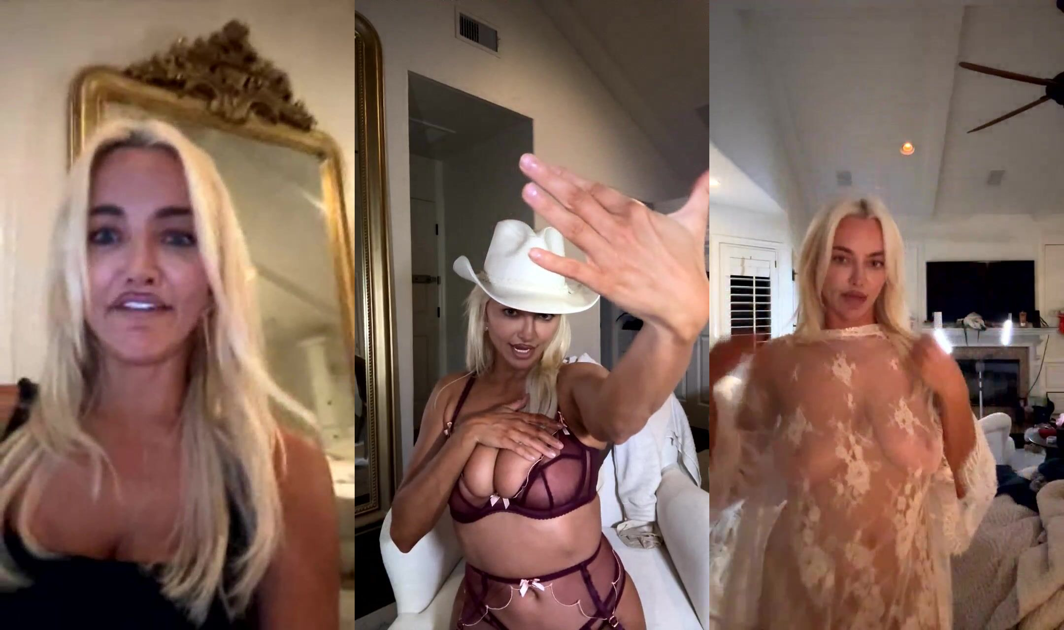 Blonde bombshell Lindsey Pelas try on haul lingerie and a sheer robe during a seductive live stream video that's pure fire!