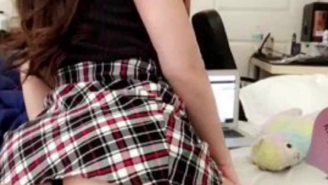 Petite Cutie kittyxkum in black leggings and plaid skirt spreads her Thick Thighs wide for a buzzing vibrator. Watch her masturbate her shaved pussy until she gushes in a wet squirting climax.