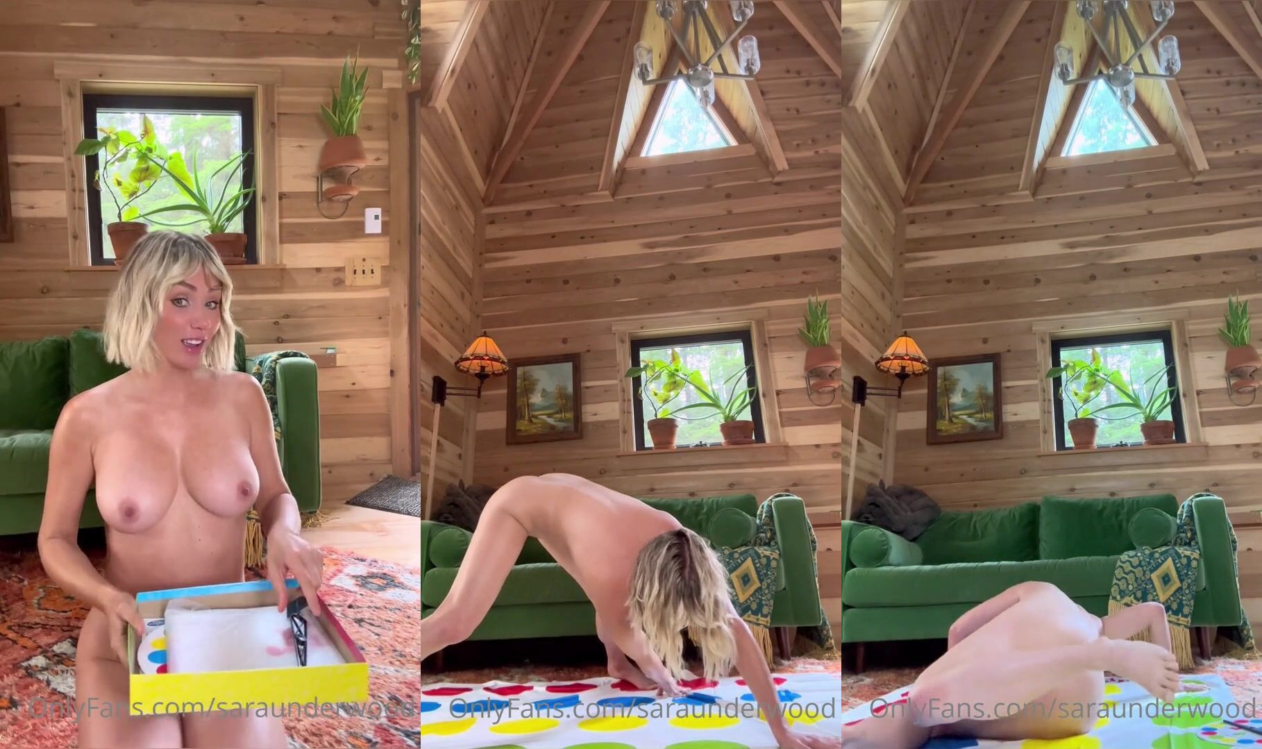 Description: SaraUnderwood gets fully naked with thick thighs and teases with her massive boobs and juicy pussy in a cozy cabin in this OnlyFans video.