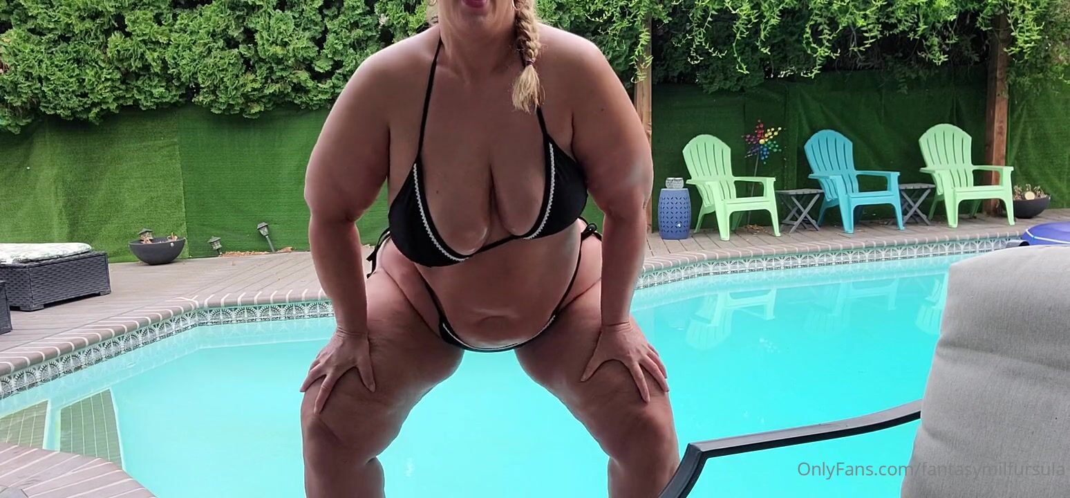 Description: WATCH busty fantasymilfursula tease by the pool wearing a sexy black bikini.