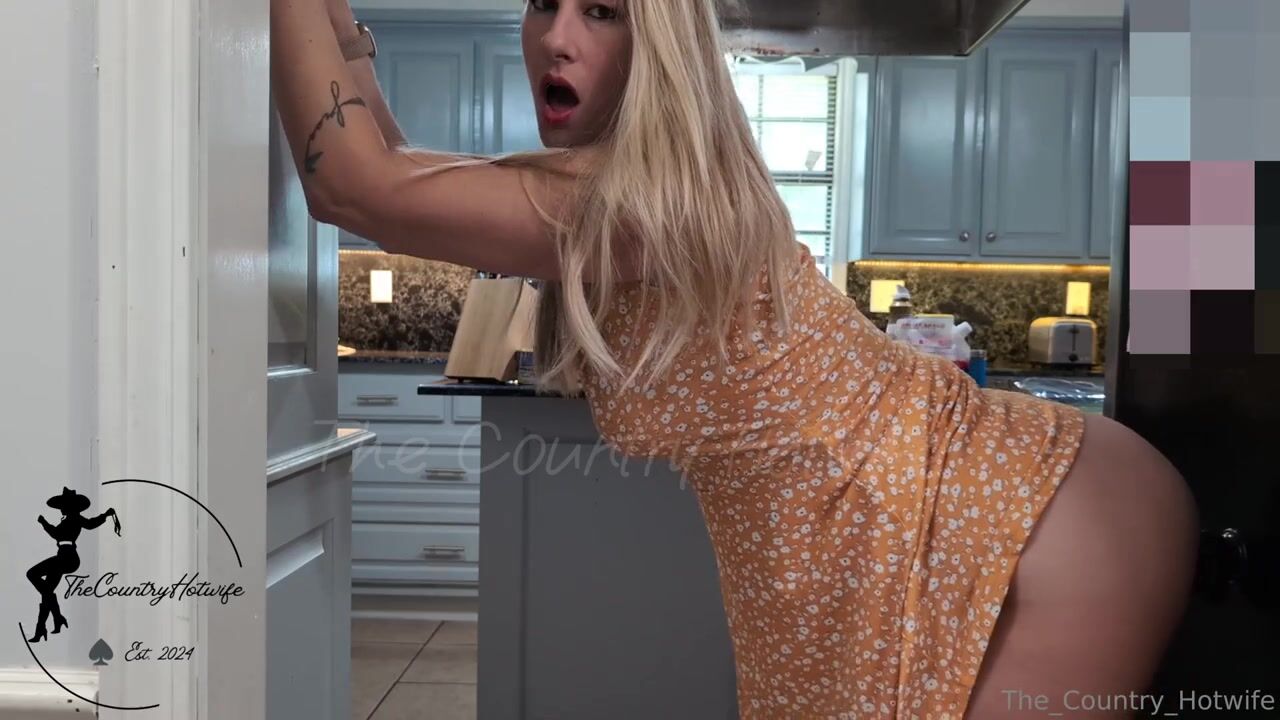The_Country_Hotwife OnlyFans Blonde in Orange Dress Plays with Black Dildo in Kitchen