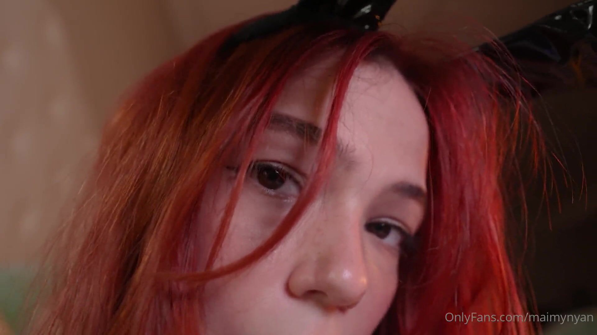 Petite redhead MaimyNyan brings you an intimate ASMR tease with her perky tits and pussy slip in roleplay lingerie.