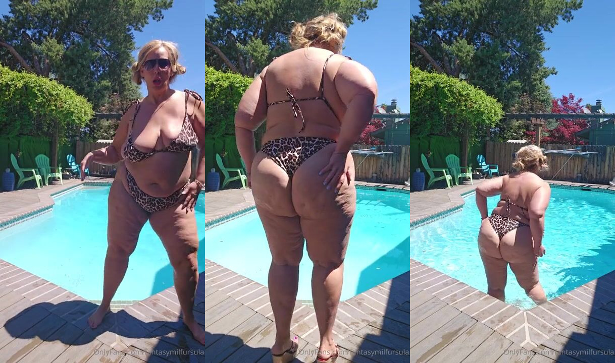 Ursula Andreia aka fantasymilfursula OnlyFans Curvy Goddess Teasing in Leopard Bikini by the Pool