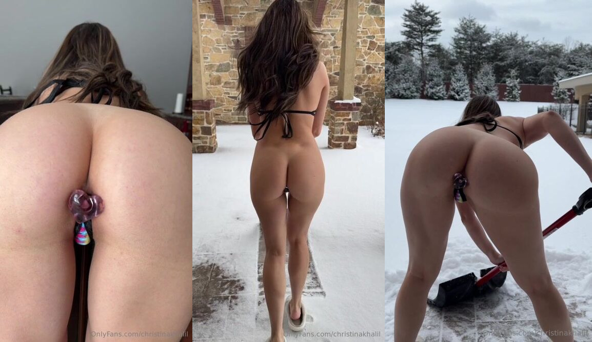 Christina Khalil teases her tight asshole with a butt plug while barely covered in a slingkini for a steamy winter fuck fest video