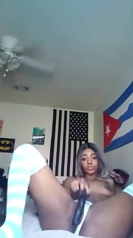 Tatted Ebony Teasing Her Pussy with a Dildo in Amateur Video