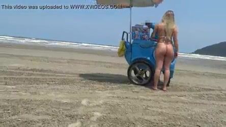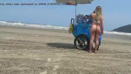 Wife Teases on Beach for Ice Cream Vendor in Amateur Public Video
