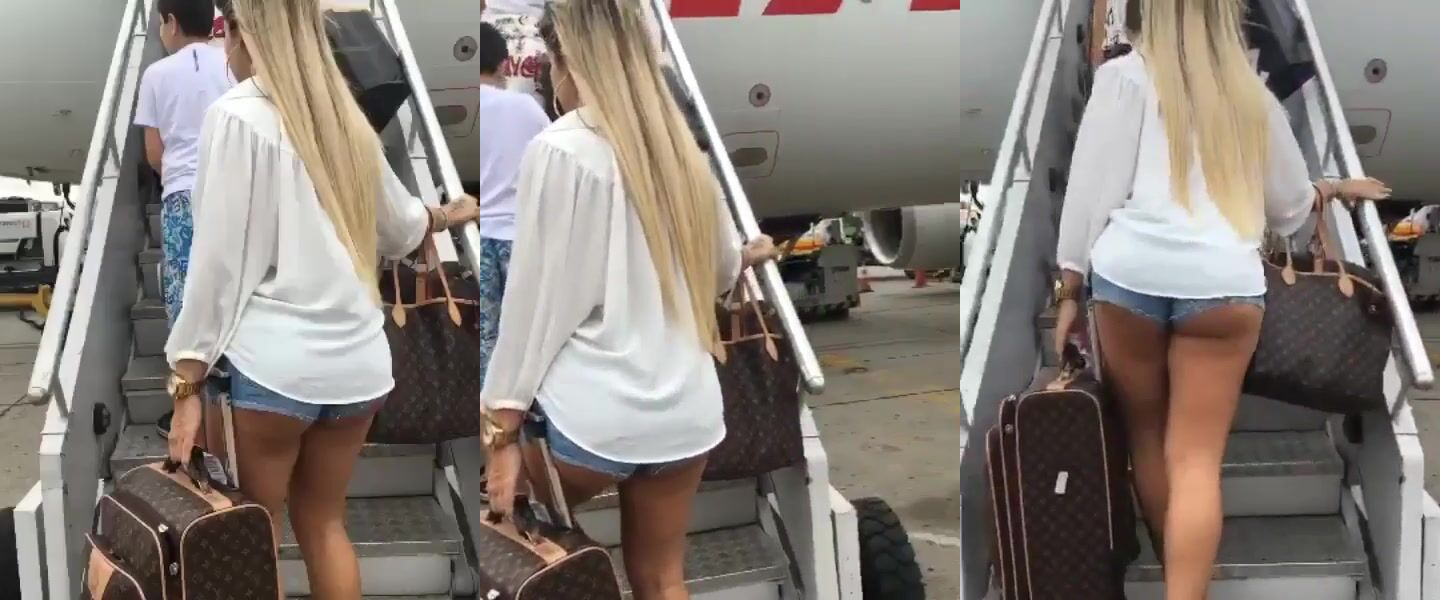 JuicyBrunette Teases In Public As She Boards The Plane In This Amateur Video
