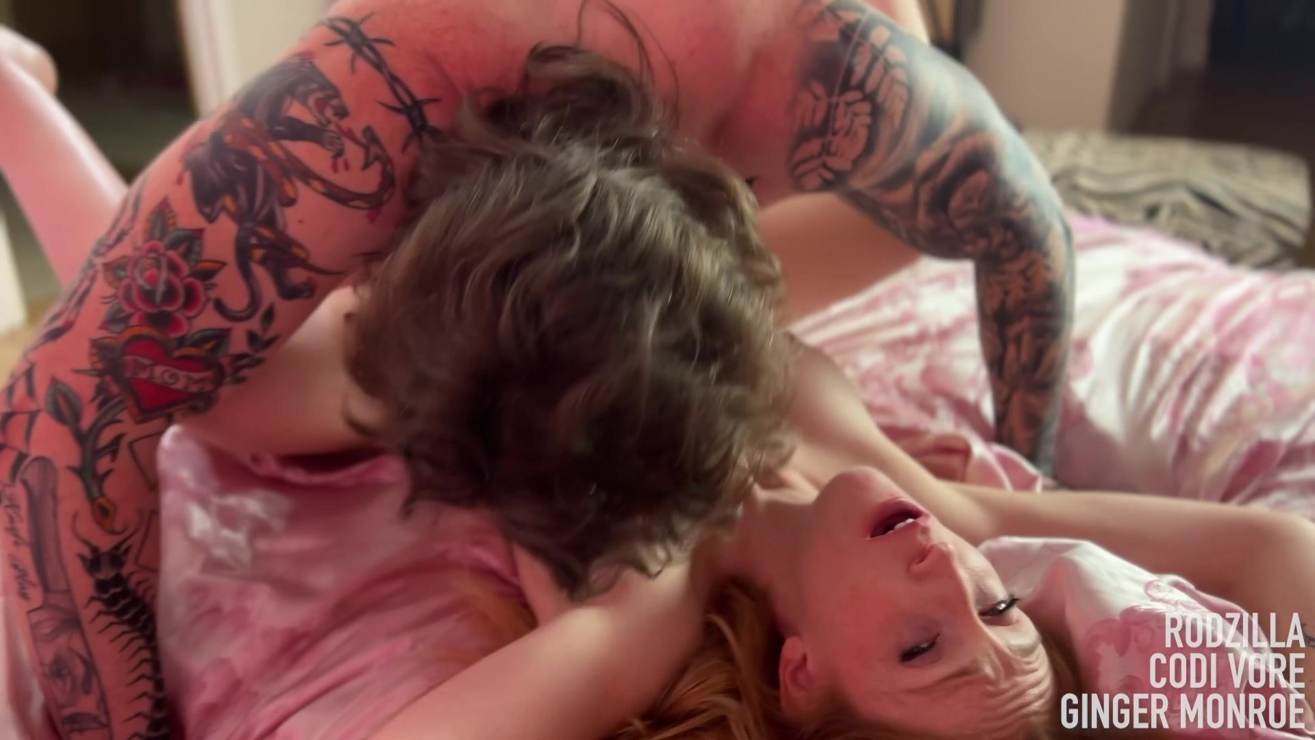Codi Vore and Ginger Monroe get freaky in a steamy Spider-Verse threesome video, where cosplay and hardcore action collide for a geeky porn feast.