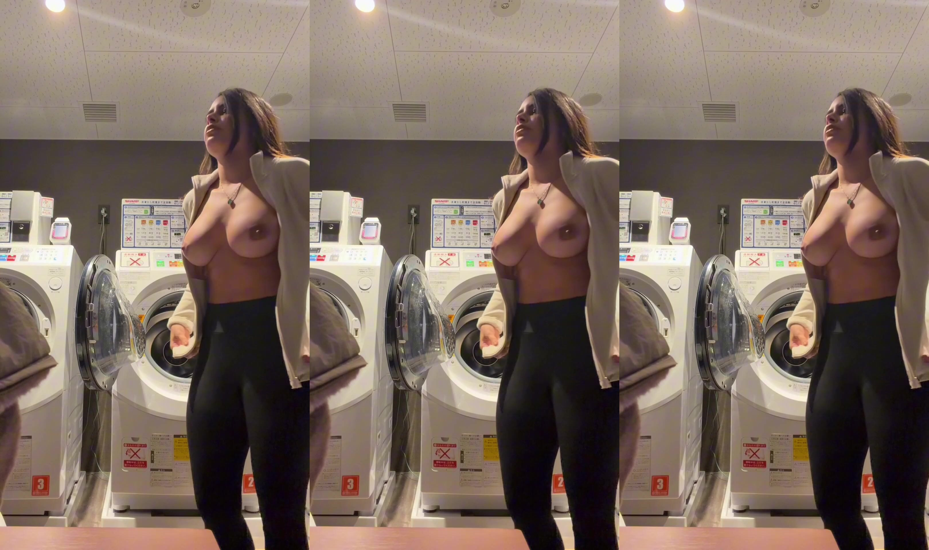 Changing shirts at the laundromat