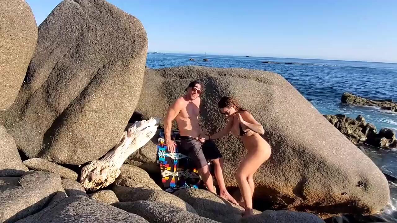 Mature older couple have porno on public beach