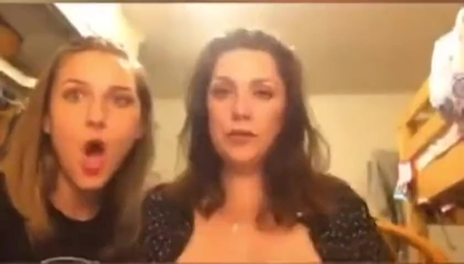 Sexy mother flashing her boobs on daughters live