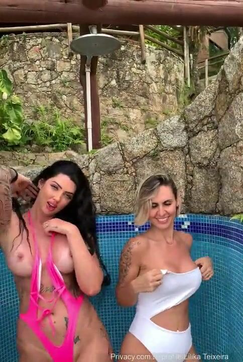 Lilika Teixeira Getting Naked at a Pool Party With Her Friend Onlyfans Leaked Video